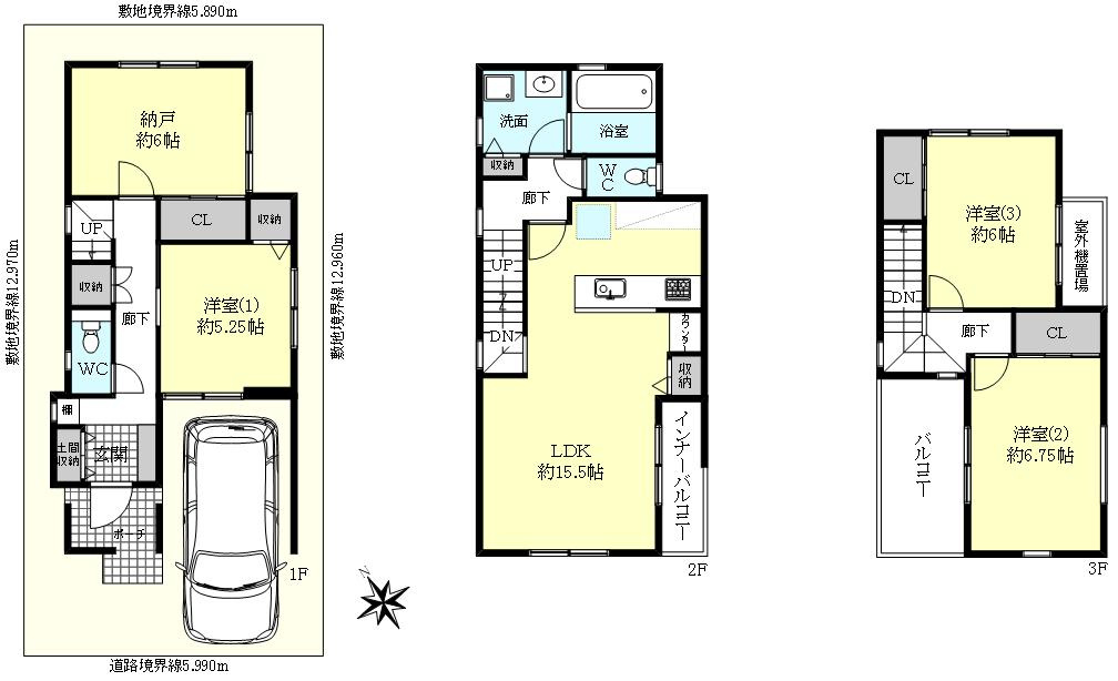 - 有(1台)/0円 ※1階床面積に車庫部分8.96㎡含